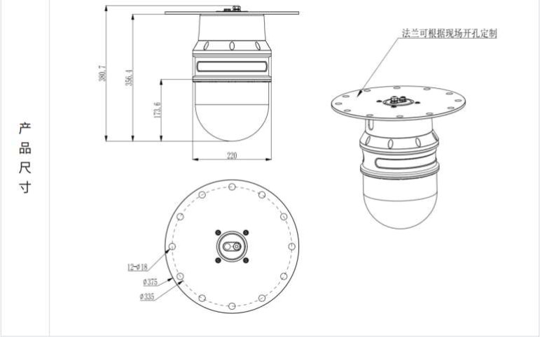 介可視·雷達全景掃描系統對外輸出一根線,線束一分為二,分為電源部分、網絡部分。雷達標配一個配電箱,配電箱內部有220VAC轉24VDC適配器,并且有接口板,可以擴展不同接口功能,建議配電箱距離雷達小于50m。