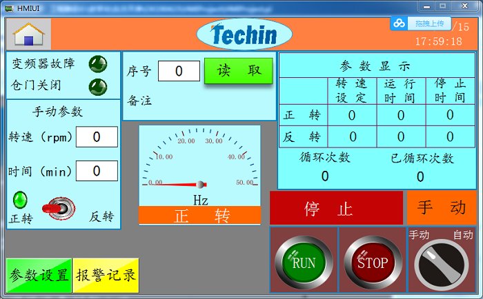 控制系統(tǒng):采用具有程序設(shè)置功能的變頻調(diào)速控制,可實現(xiàn)連續(xù)單向、連續(xù)換向、定時單向、定時換向四種方式的程控運行。