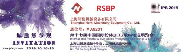 IPB 2019粉體展將于2019年10月16日-18日在上海世博展覽館4號館舉行,我公司展位號A9201,歡迎各位新老朋友們蒞臨指導!