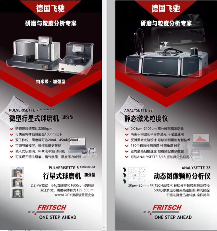 FRITSCH劍開雙刃,一面是高能高效的實驗室研磨粉碎設備,另一面是由激光粒度儀與動態圖像分析儀組成的精確穩定顆粒粒徑與形貌表征ANALYSETTE系列。