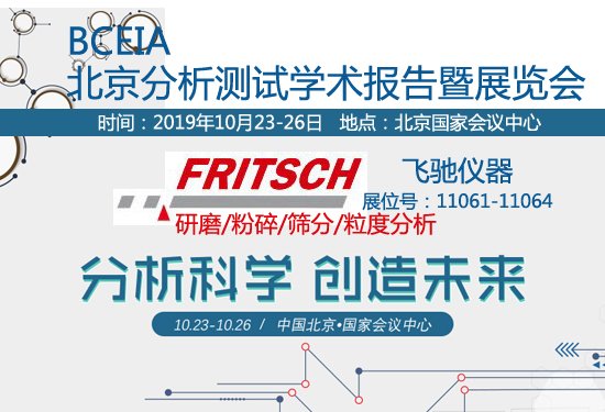 德國FRITSCH飛馳球磨儀將再度亮相BCEIA 2019