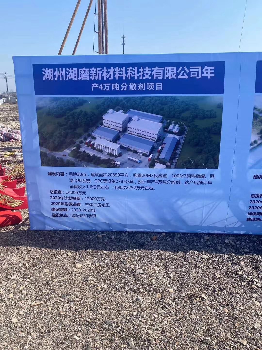 另悉,總投資1.4億元湖州湖磨新材料科技有限公司年產4萬噸分散劑項目也同期開工。