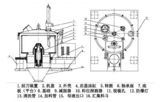 二、選擇臥式刮刀離心機時,用戶可根據車間高度和工藝要求,選擇 1 臺或 10 臺設備,并 布置成一字型。選擇此款離心機時,前期設計必須要考慮到出料口的離地高度,后續自動化 輸送才好對接,很多項目的改造,多半因為離地高度而受到了限制。物料脫水后,因含水率 發生了變化,離心機中的物料有時則會呈現結塊狀。母液中如含有易燃、易爆和毒性氣體, 此時就必須要考慮密閉輸送。