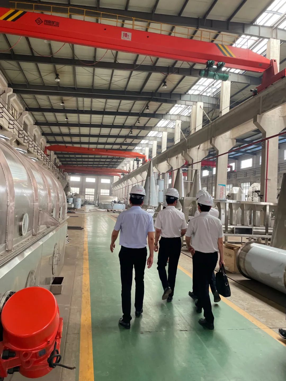 張區長首先參觀了先鋒公司制造車間,對我司現場大量在制產品:回轉窯焙燒爐、噴霧干燥機、閃蒸干燥機、真空干燥機、流化床干燥機等產品進行了了解,并對我司產線裝備,生產規模、現場管理和員工熱火朝天的干勁,給予了極大的贊許。