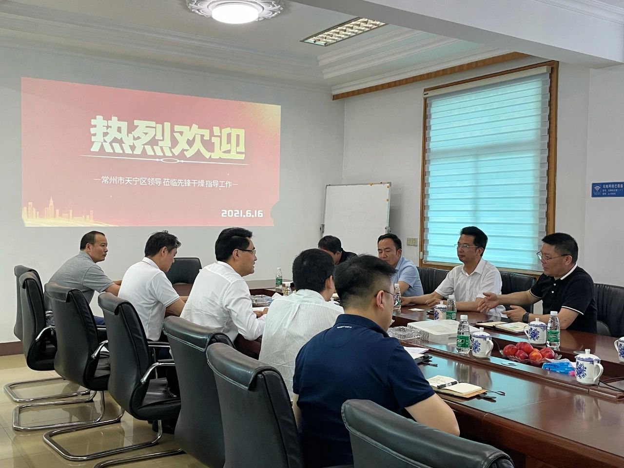 2021年6月16日下午,中共常州市天寧區委副書記、區長張凱奇一行,蒞臨先鋒干燥參觀調研,區政府辦、鄭陸鎮、區工信局有關人員參加。公司董事長謝洪清和總經理查協芳陪同調研。