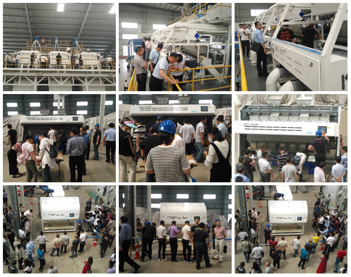 來自多地的客戶集合在新糧生物科技有限公司,現場觀摩、考察效果,在色選過程中通過講解從設備型號、功能特點、色選效果、技術參數等多方面,讓用戶與色選機百分百接觸,更深入了解。