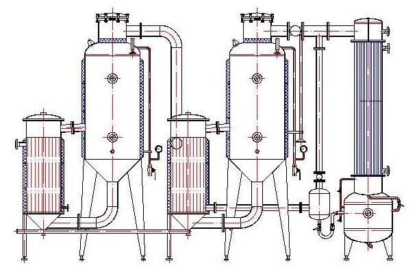 1、濃縮罐為臥式塔釜結構,按GB150-1998《鋼制壓力容器》進行制造,支腳式安裝。濃縮罐由內膽、加熱夾套、保溫三層組成。