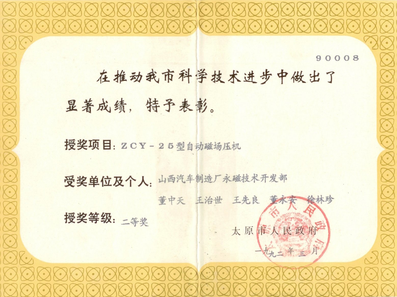 1992年太原市科技進步獎