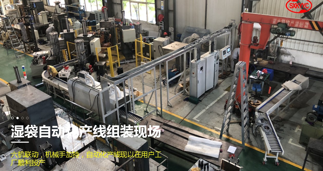 5. 等靜壓自動化線:干袋式等靜壓設備雖然便于實現自動化,但是制品類型單一,換型不方便;而濕袋等靜壓設備雖然換型方便,但需要大量人工操作,如何提高效率,金開源在這方面進行了探索。2018年金開源為客戶設計了一套濕袋等靜壓自動化線,將多臺等靜壓專機集成在一起,設計了具有通用結構特征的模具,應用機器人完成上下料操作,添加了裝料機及其他輔助自動化機構。方案達到了較好的效果,簡化了操作,節省了大量的人力。