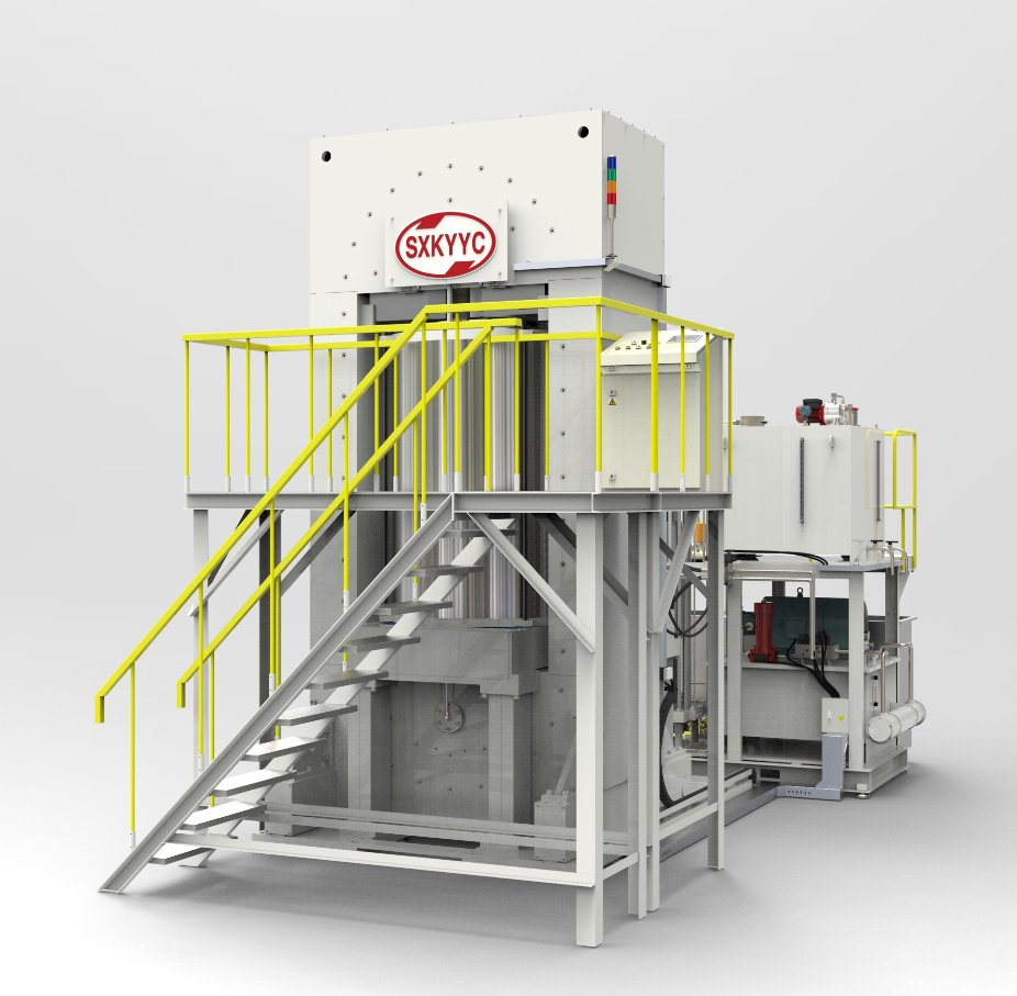 由于U系列只有100和150兩種規格,無法滿足客戶的需求,于是金開源開始研發更大規格的U系列設備。在新的方案中,改用了可靠性更高的單滑塊結構,下沉式上缸和增壓器明顯降低了設備高度,同時應用了M系列的相關技術,采用伺服液壓系統可實現全壓力段升壓和降壓速度線性可調,相對于S系列設備應用了幾十項改進和升級。U300機型在2017年問世。