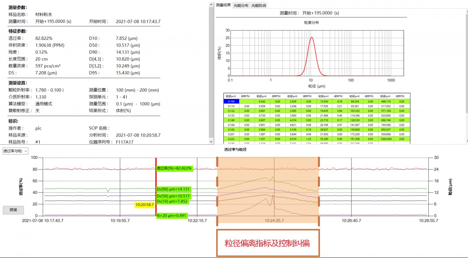 PATlink 1000系統粒度測控范圍是0.1-1000 μm,采用光纜連接控制室的計算機和粒度檢測系統及控制單元,具有極強的抗干擾能力,并實現遠距離的數據傳輸和控制。嵌入式仿真控制程序模塊和界面,使所有閥門和氣流狀態一目了然。最高每秒5次的完整的粒度分布數據可通過滿足Modbus RTU/TCP等標準工業通信控制協議的接口實時輸送至用戶的PLC系統,任何時刻的粒度指標的偏離都可觸發對生產設備的自動調整和控制,確保產品顆粒粒度持續滿足用戶設定的指標要求。為眾多粉體生產制造提供了保持24小時在線連續粒度測試與控制解決方案,可針對鋰電池材料、原料藥、非金屬礦、粉末涂料、陶瓷材料、水泥和粉末冶金等領域企業提供定制化服務,實現了粉體生產過程粒度連續控制,既確保了產品質量同時又提高了生產效率。
