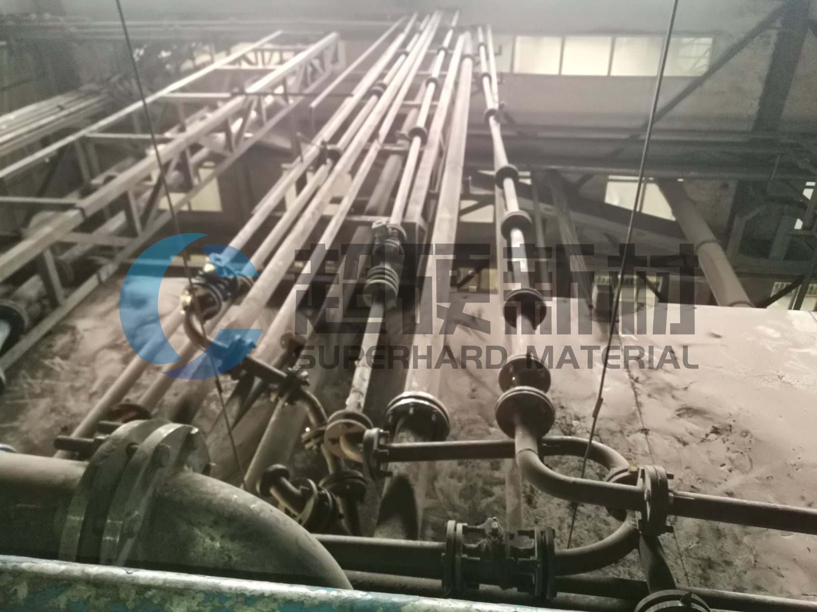 超硬牌整體式耐磨陶瓷管鋼件采用304不銹鋼整體成型(煨彎,非直管蝦米焊接),內(nèi)壁襯裝經(jīng)1700度整體燒制的95或99高純氧化鋁陶瓷管(市場(chǎng)上90或92瓷居多),陶瓷與鋼管層陶瓷專用粘膠填充。與一般陶瓷內(nèi)襯復(fù)合管不同的是,該種管內(nèi)外壁光滑,氣流通暢,磨損極低,耐壓、抗腐性好。經(jīng)實(shí)踐證明,超硬牌耐磨陶瓷管道在高鎳三元產(chǎn)線使用壽命至少在八年以上。