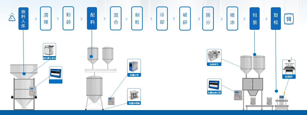 在飼料生產流程中,杰曼科技稱重儀表、稱重傳感器、散料單元、包裝單元、檢重秤等產品應用于多個關鍵環節,涉及從原料準備到成品出庫等多個應用場景,提高生產效率、降低損耗的同時,為產品質量安全保駕護航。