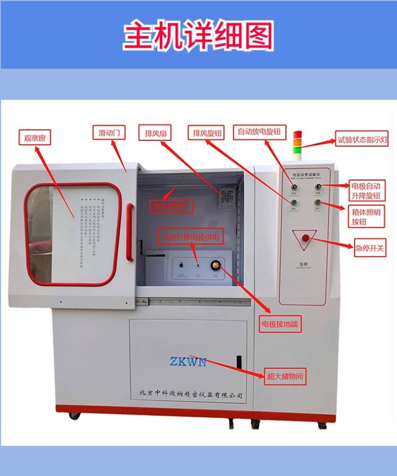 主要適用于固體絕緣材料(如:塑料、橡膠、層壓材料、薄膜、樹脂、云母、陶瓷、玻璃、絕緣漆等絕緣材料及絕緣件)在工頻電壓或直流電壓下?lián)舸姸群湍碗妷旱臏y試。