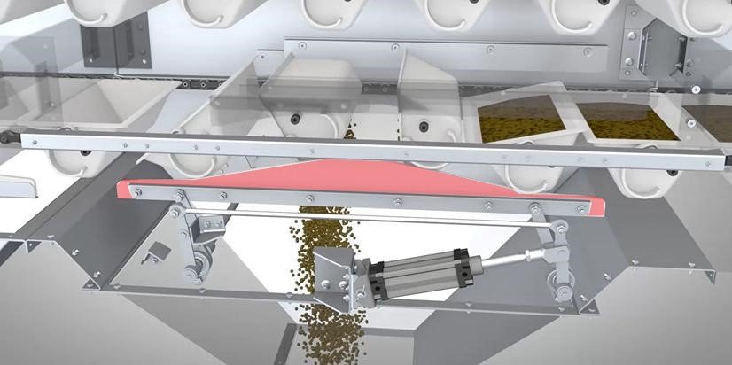 例如,克伯韋為國內某知名堅果加工企業提供剝殼機喂料線輸送系統,一套輸送系統需要為14臺剝殼機喂料,工藝上要求一套輸送系統上需要14個出料口同時均勻出料。克伯韋通過位置傳感器控制卸料閥旋轉角度,讓每個出料口實現物料的均勻分配,解決了客戶工藝上一大難題。