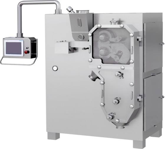 干法制粒機是繼第二代制粒方法的“一步制粒”后發展起來的一種最新的制粒方法,是一種環保式的制粒工藝,直接將藥粉壓制成顆粒的新設備。干法制粒機廣泛用于制藥、食品、化工等行業上的造粒,特別適用于遇濕遇熱易分解失效或結塊的物料進行造粒。干法制粒機制成的顆粒可以直接壓片或灌裝膠囊。