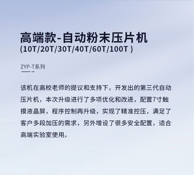 該機在高校老師的提議和支持下,開發(fā)出的第三代自動壓片機,本次升級進行了多項優(yōu)化和改進,配置7寸觸摸液晶屏,程序控制再升級,實現(xiàn)了精準控壓,滿足了客戶多段加壓的需求,另外增設(shè)了很多安全配置,適合高端實驗室使用。