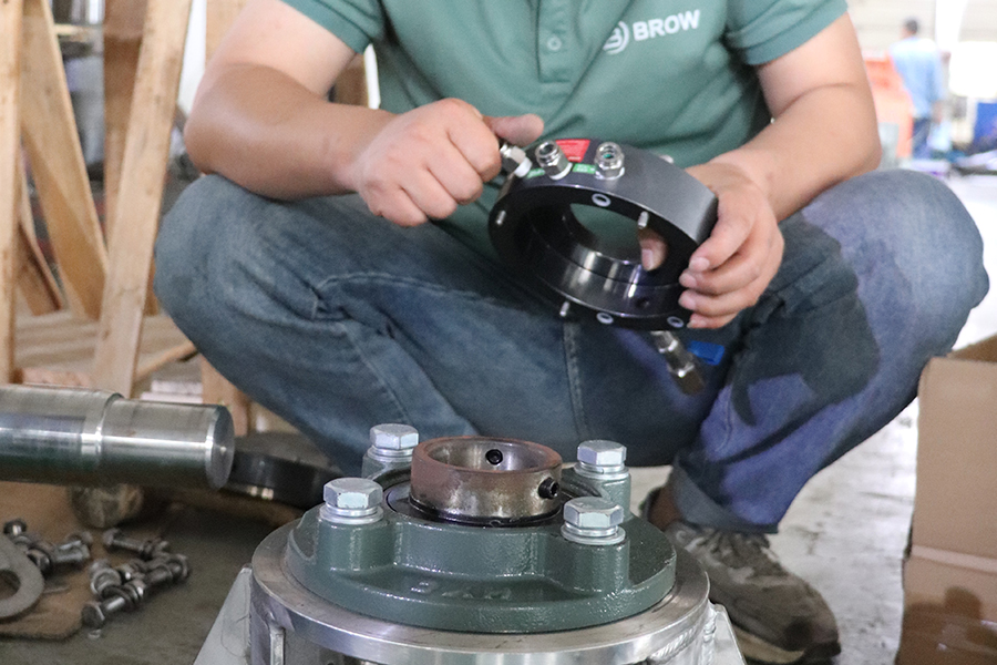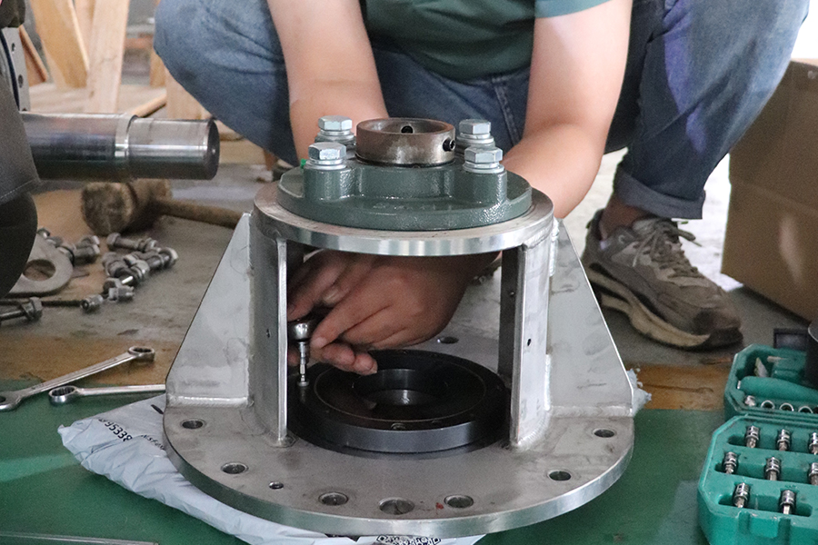 由于輸送機主軸、支撐座尚未完全固定,安裝團隊采用分步作業方式,確保軸封的正確安裝: