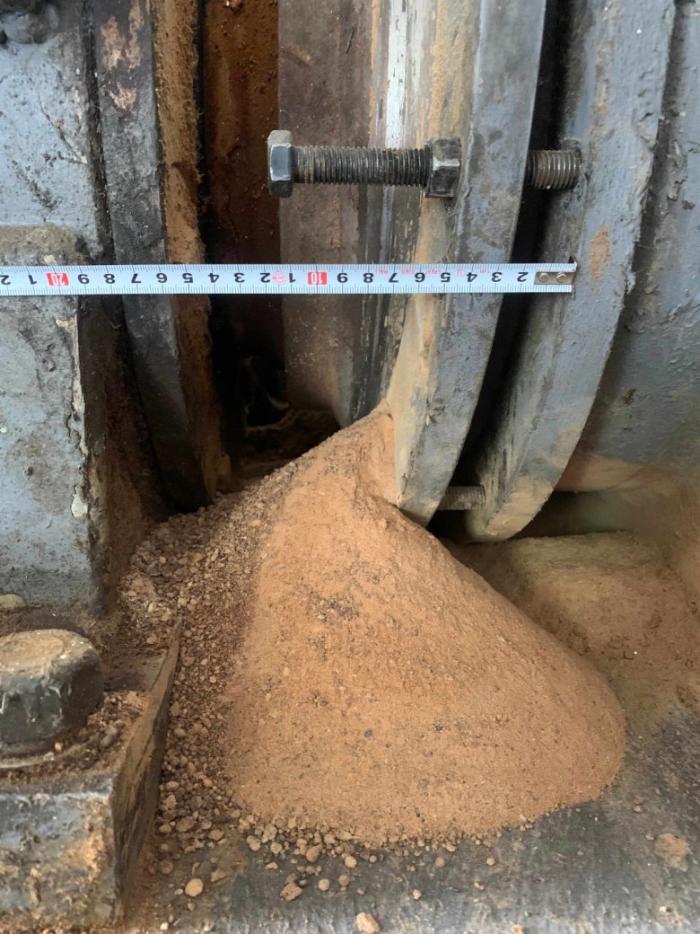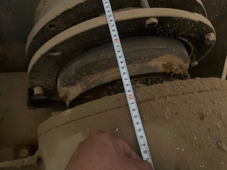 現場觀察發現,該混合機軸端密封存在嚴重泄漏問題。泄露的物料顆粒度類似豆渣,雖非揚塵,但持續散落,不僅造成物料損耗,更與客戶正在嚴格執行的5S精細化管理(環境整潔為核心要求) 背道而馳。作為上市企業,維持高標準的生產環境和履行環保責任至關重要。