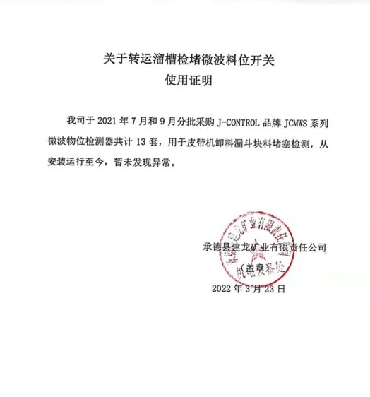 三、J-CONTROL 微波開關皮帶檢堵應用