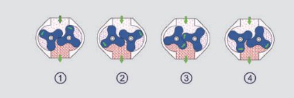 螺桿鼓風機的設計,陰陽轉子的凹型齒數量不同,通過減少進氣口到出氣口的間隙體積實現內部壓縮,這種內壓縮比羅茨原理更有效。平均而言,螺桿鼓風機比相同流量的羅茨鼓風機效率高 30%,壓力越高,節能程度越顯著。